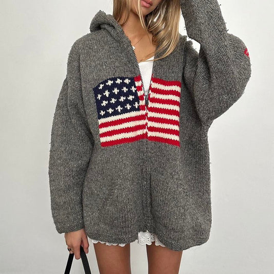 Vintage 90’s American flag grey knit zip up jacket 🤎