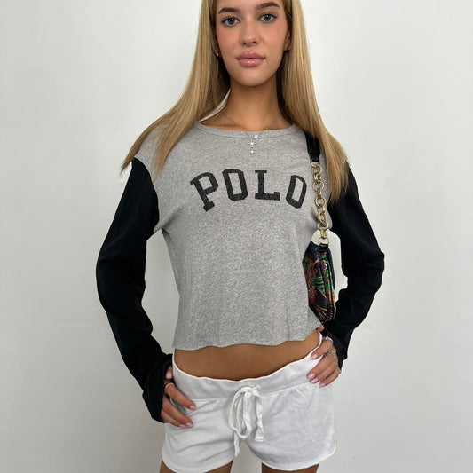 Vintage Ralph Lauren preppy grey cropped off shoulder top