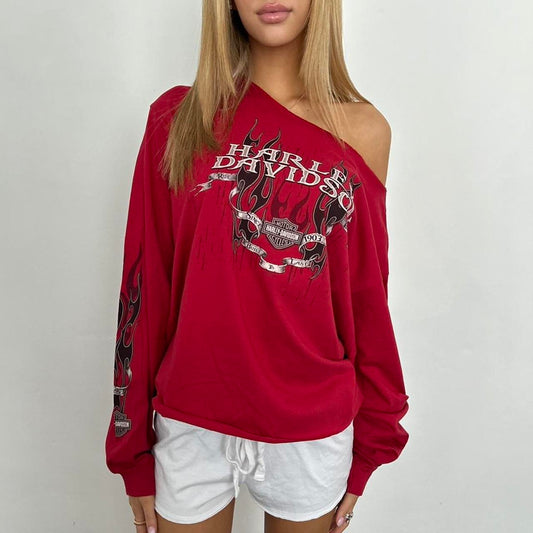 Vintage Harley Davidson red off shoulder top