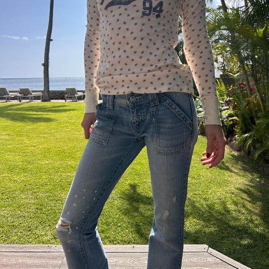 Vintage 2000’s Hollister blue distressed bootcut jeans
