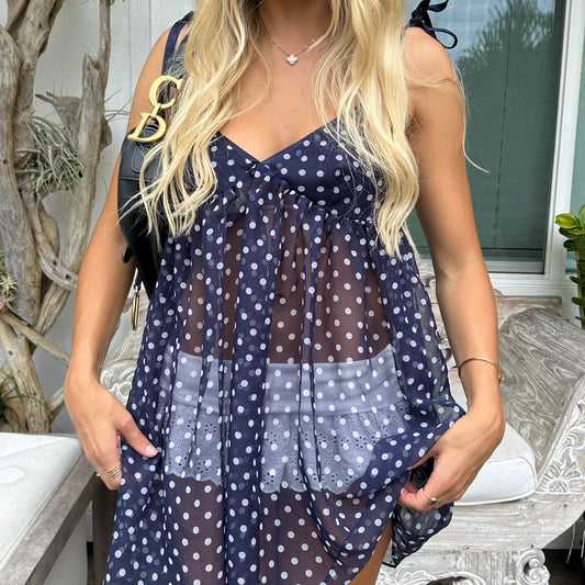 Vintage 90s polka dot sheer chemise dress