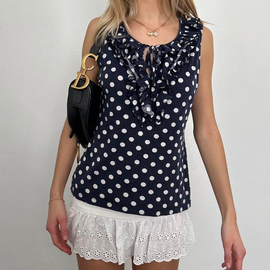 Sold outVintage 2000s navy polka dot top