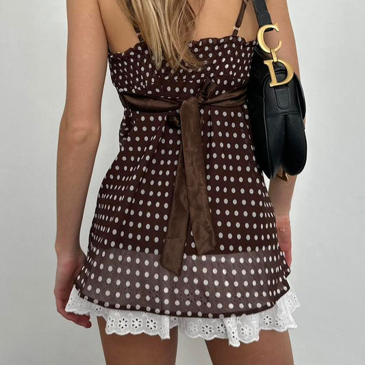 Vintage 2000s brown polka dot babydoll top