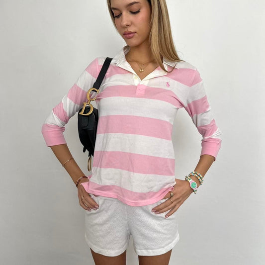 Vintage Ralph Lauren pink and white long sleeve polo top