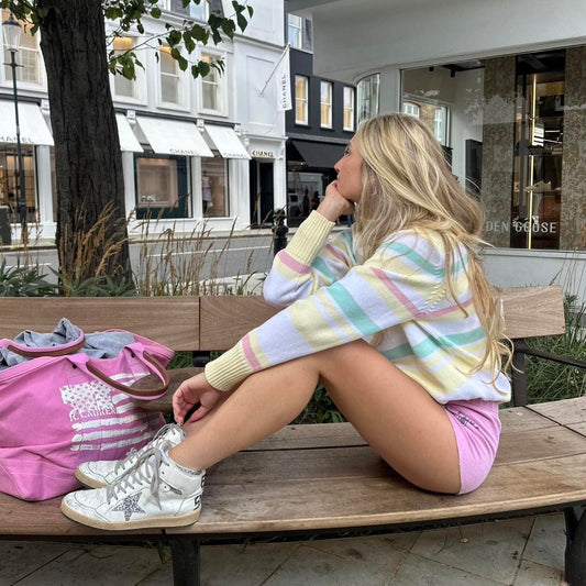 Vintage 90’s pastel striped yellow colourful knit zip up