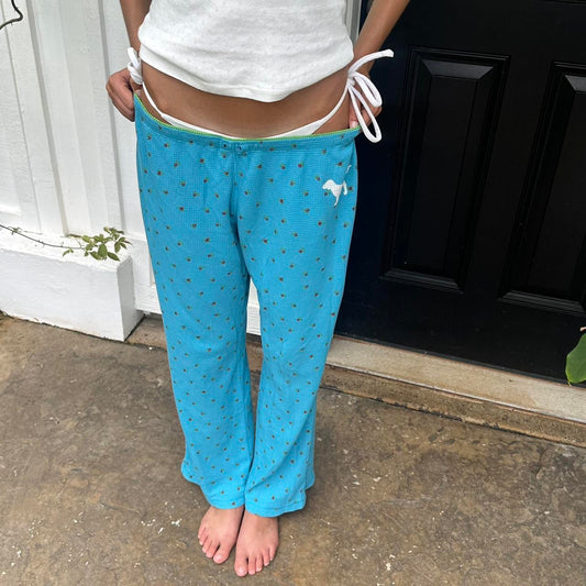 Vintage 2000’s Victoria’s Secret rare waffle material floral blue pants