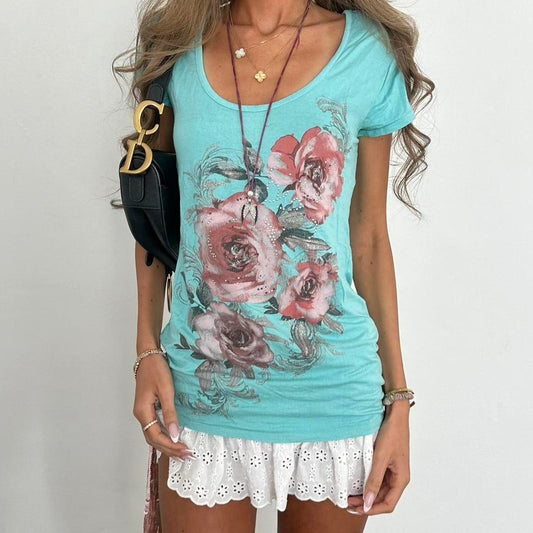 Vintage 00s blue flower print top