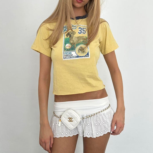 Sold outVintage yellow baseball dog baby tee