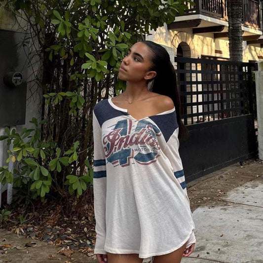 Vintage varsity off the shoulder long sleeve jersey