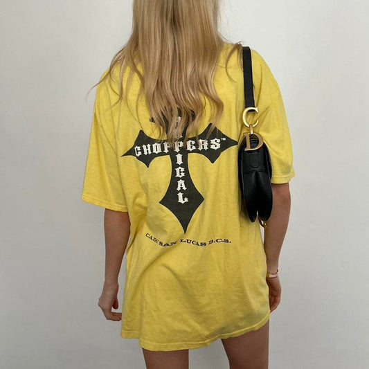 Vintage 2000s yellow West Coast Choppers graphic varsity top