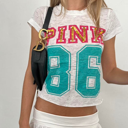 Vintage 90’s Ralph Lauren pink varsity baby tee