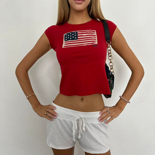 Vintage Ralph Lauren red embroidered American flag baby tee