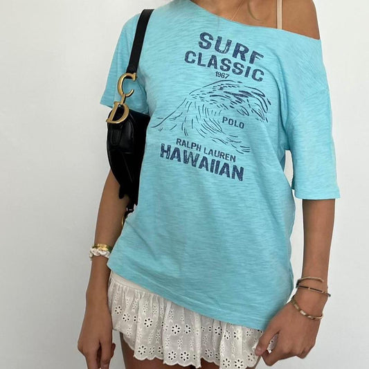 Vintage aqua blue Ralph Lauren surf off shoulder tee