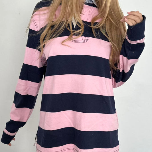 Vintage Polo Ralph Lauren striped navy and pink polo long sleeve top