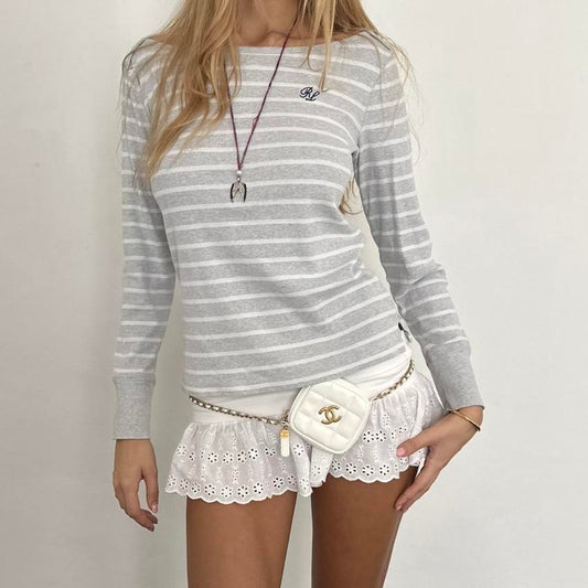 Vintage Ralph Lauren grey and white striped long sleeve top