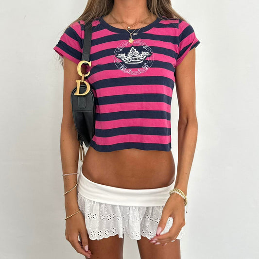 Vintage Ralph Lauren pink and navy striped lobster baby tee