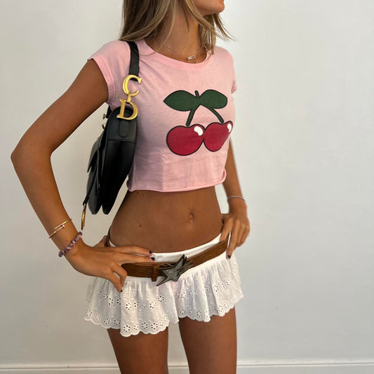 Sold outVintage pink cherry baby tee π