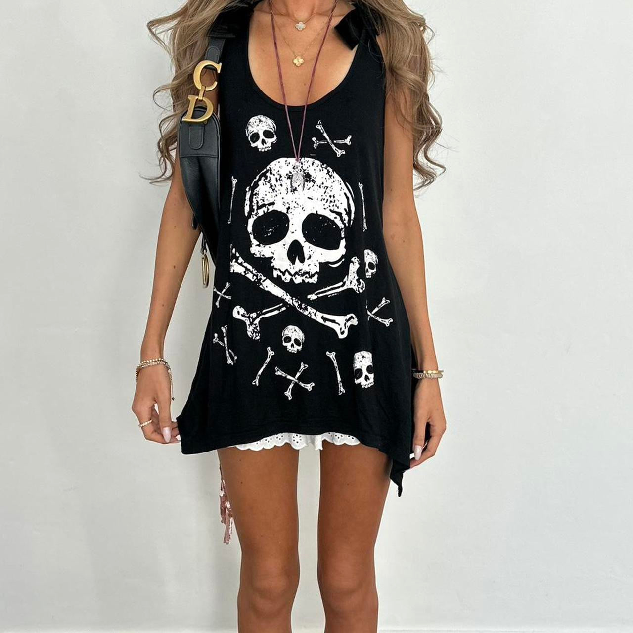 Vintage 00s black skull top