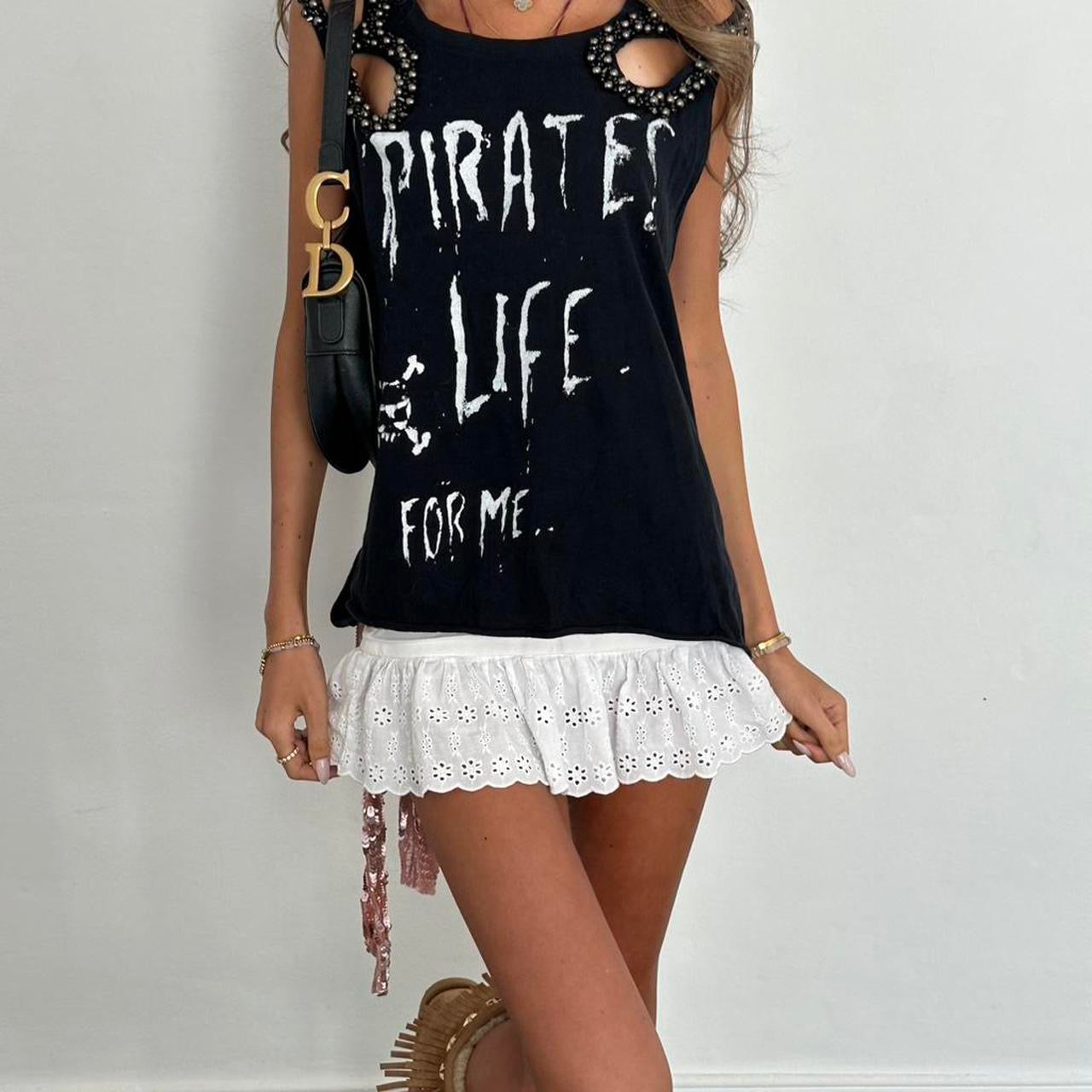 Vintage 00s distressed ‘Pirates life for me’ ☠️ graphic black top