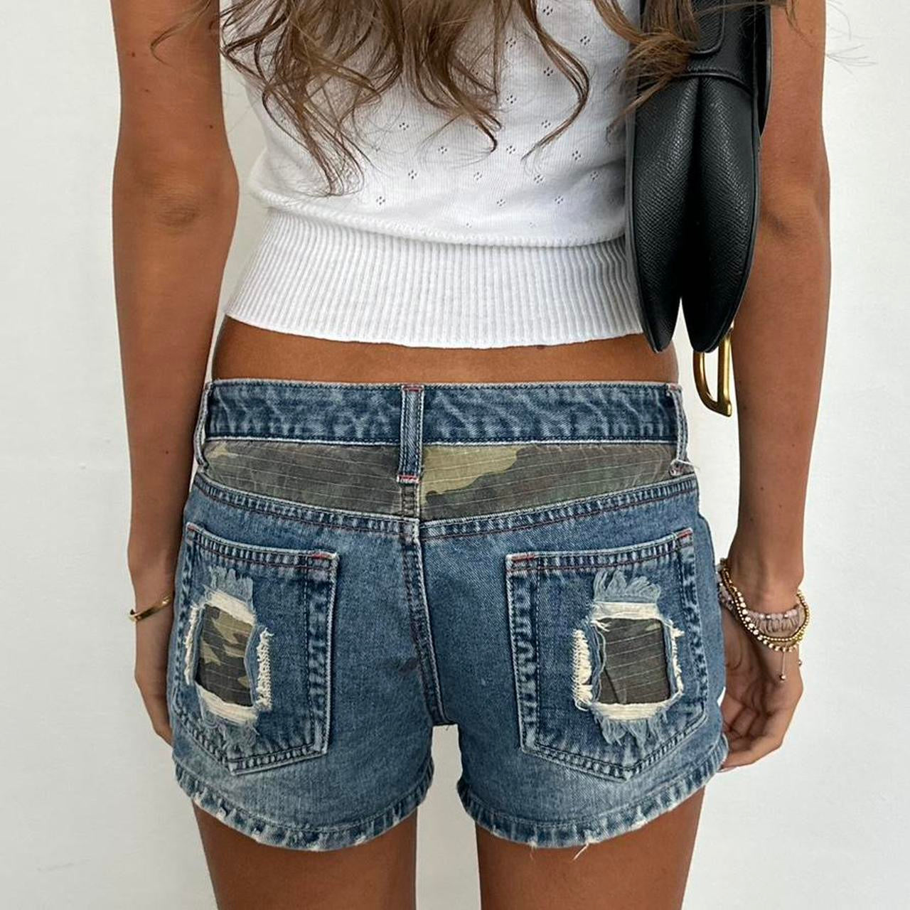 Vintage 2000’s Abercrombie and Fitch denim camouflage patch shorts