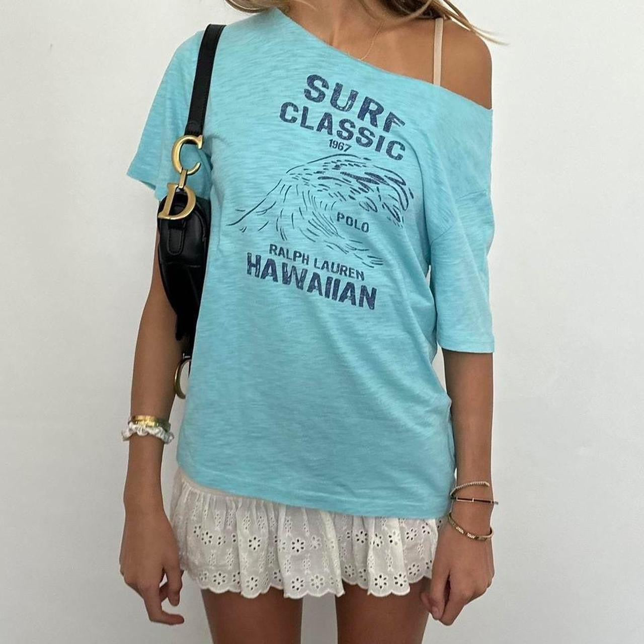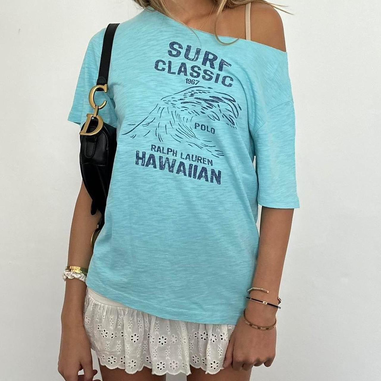 Vintage aqua blue Ralph Lauren surf off shoulder tee