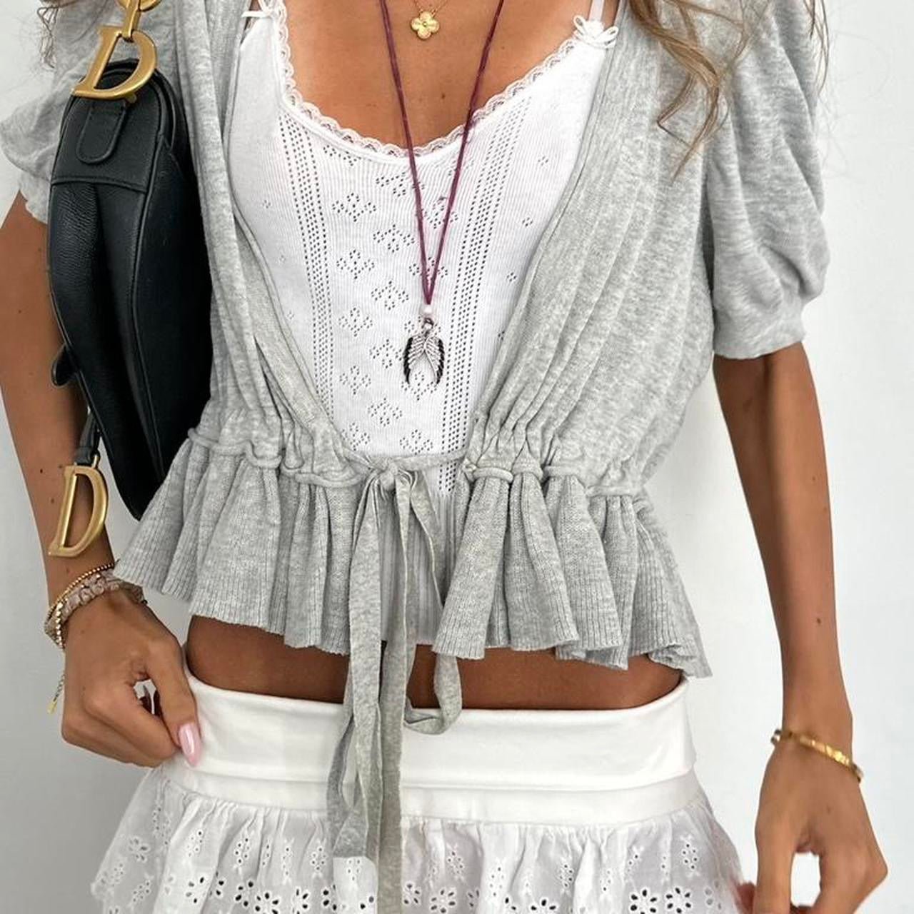 Vintage 2000’s grey rufffle cardigan top