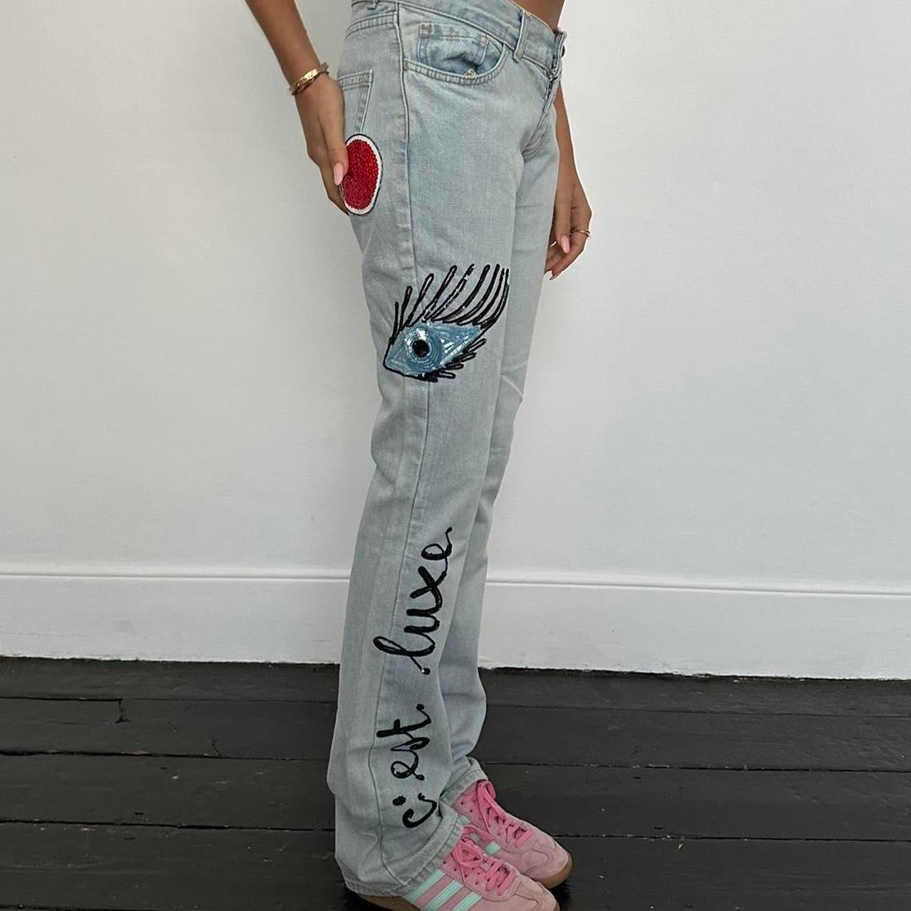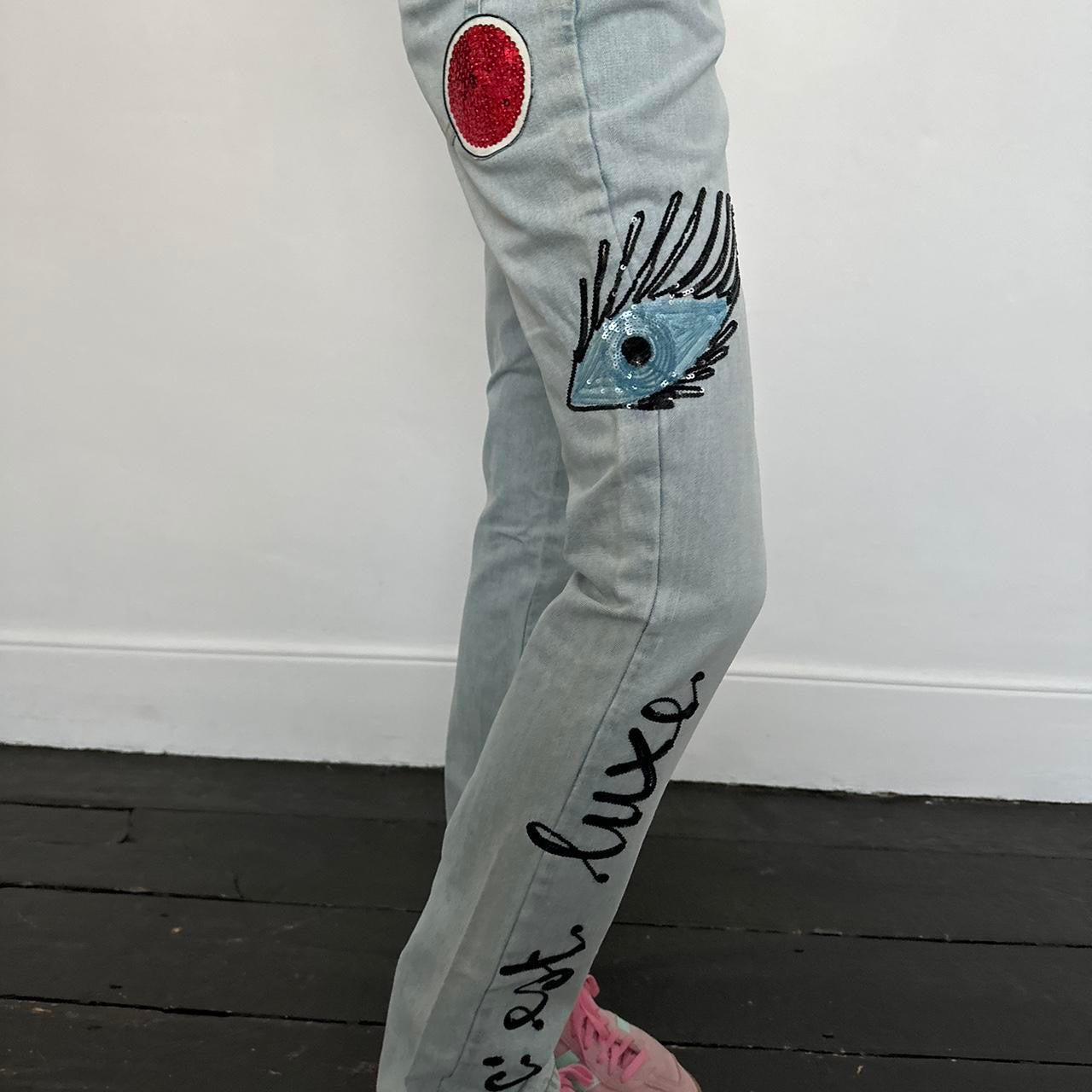 Vintage 2000’s sequin eye design blue jeans