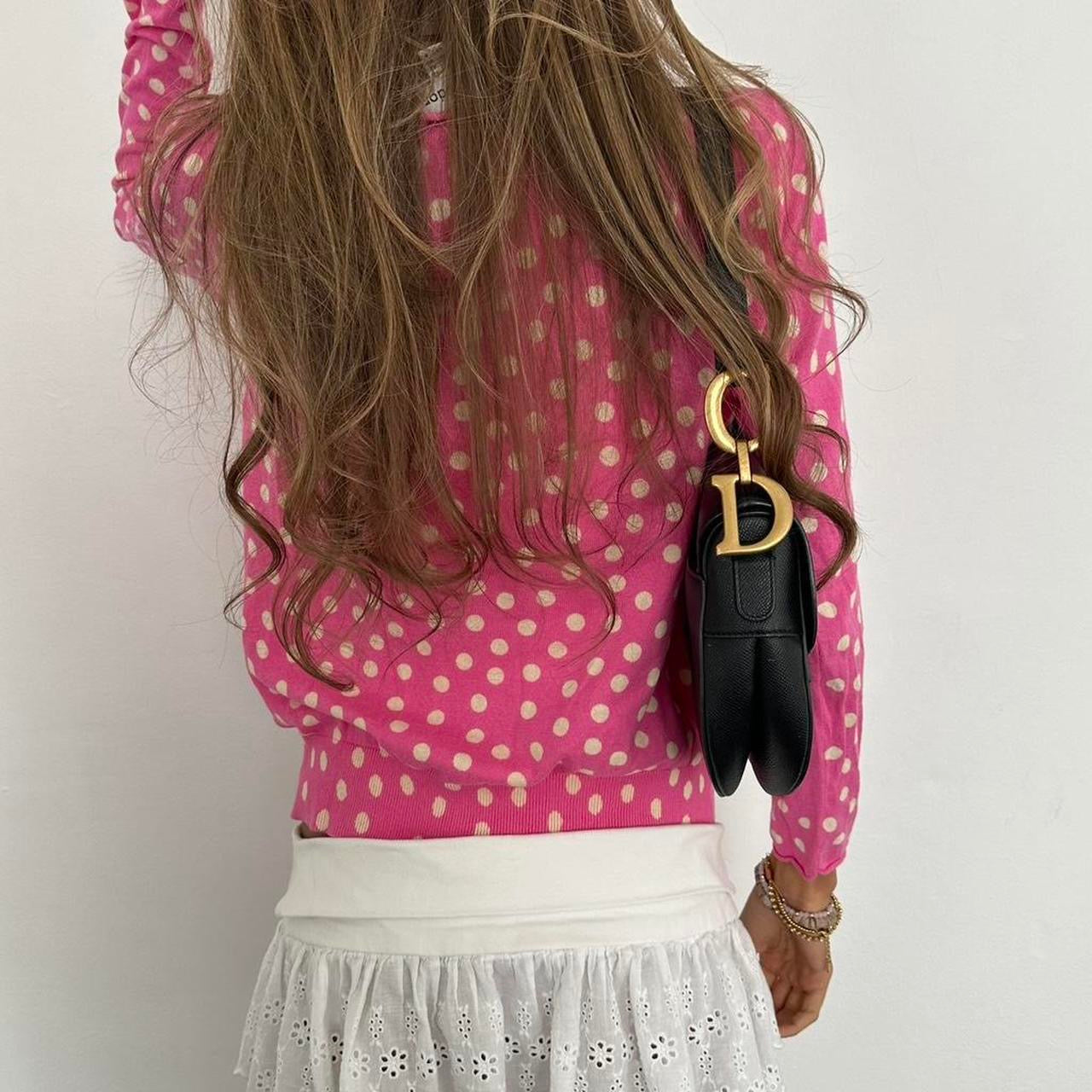 Vintage 2000s pink polka dot cardigan top