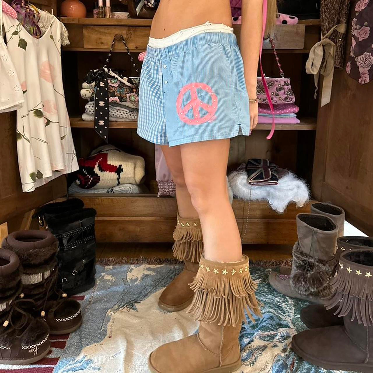 Cutest love peace pink shorts