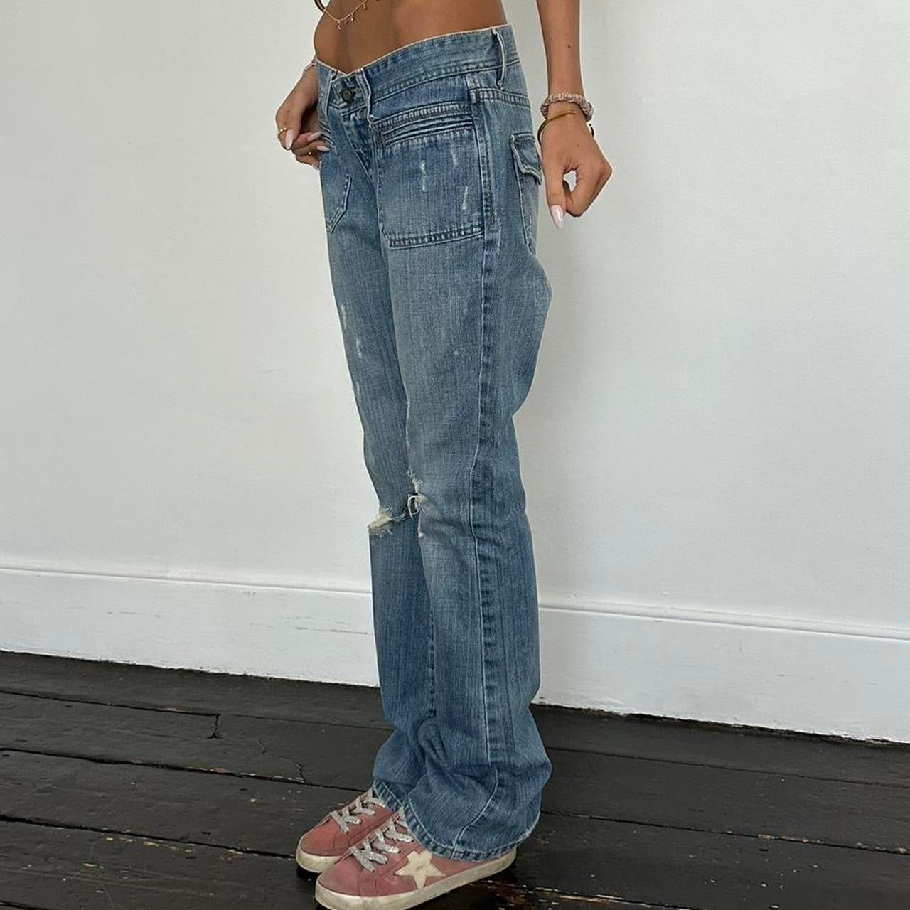 Vintage Abercrombie & Fitch blue distressed bootcut jeans