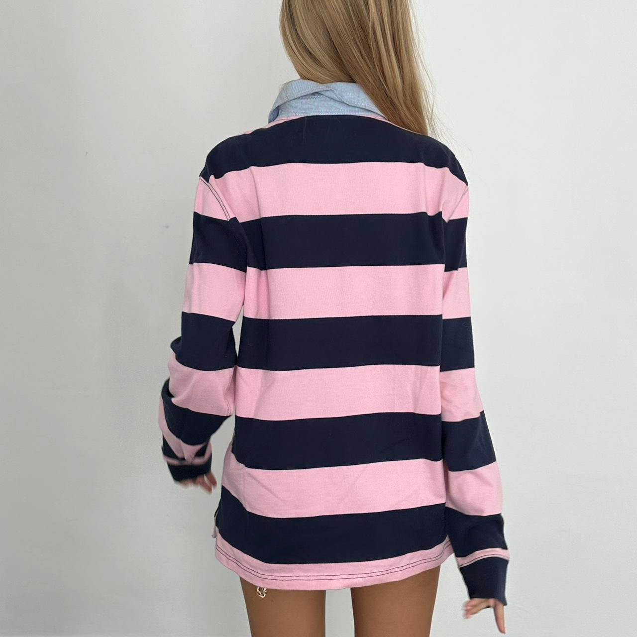Vintage Polo Ralph Lauren striped navy and pink polo long sleeve top