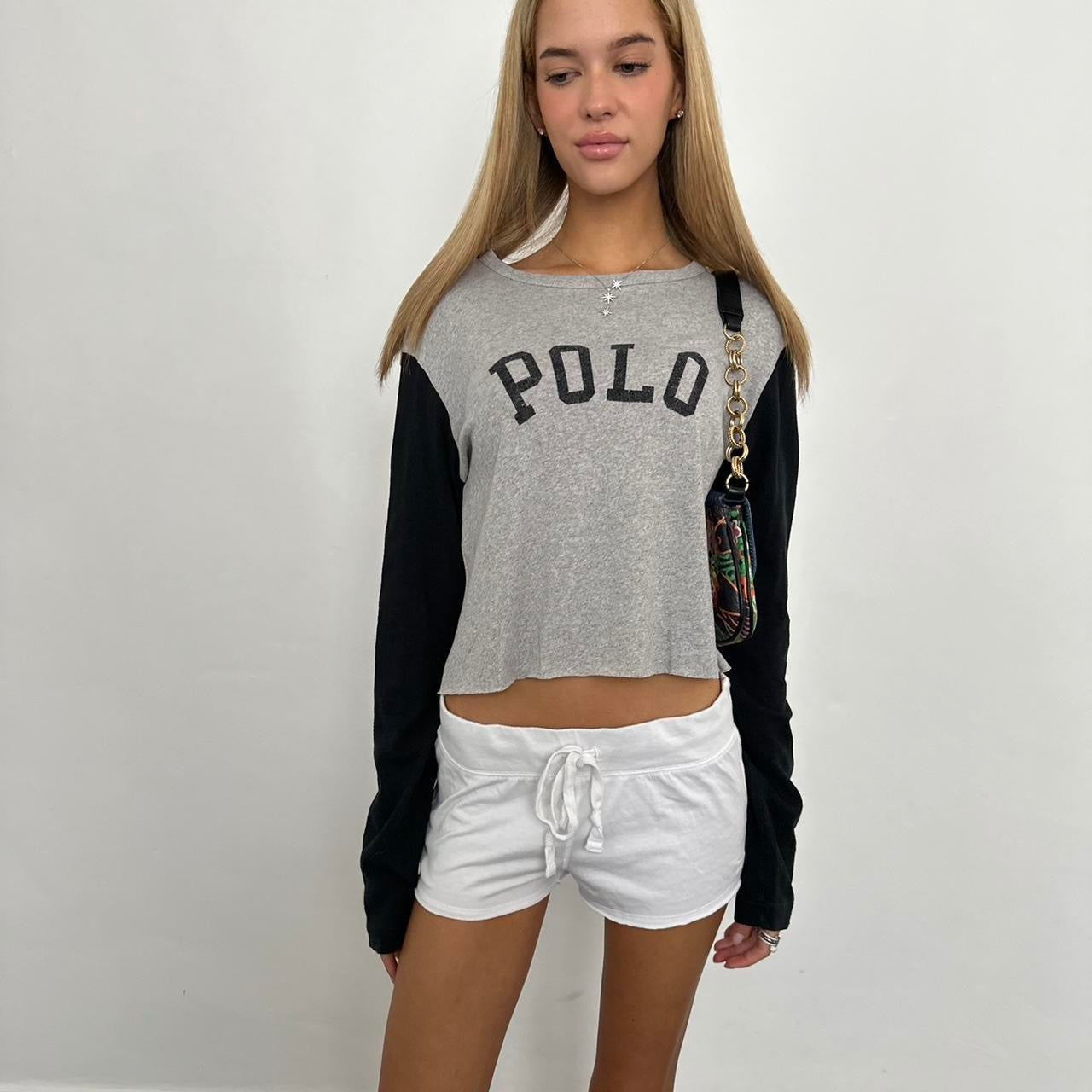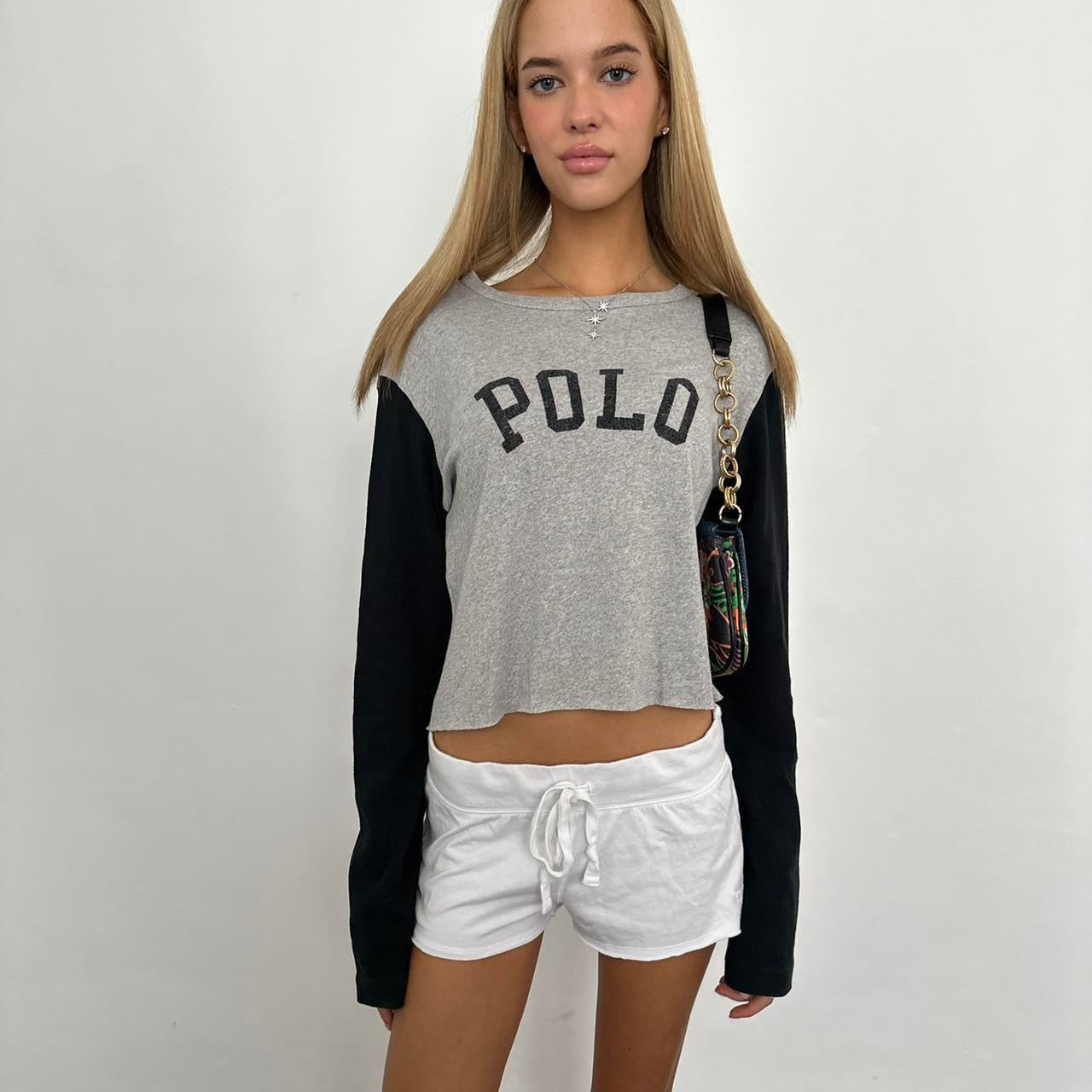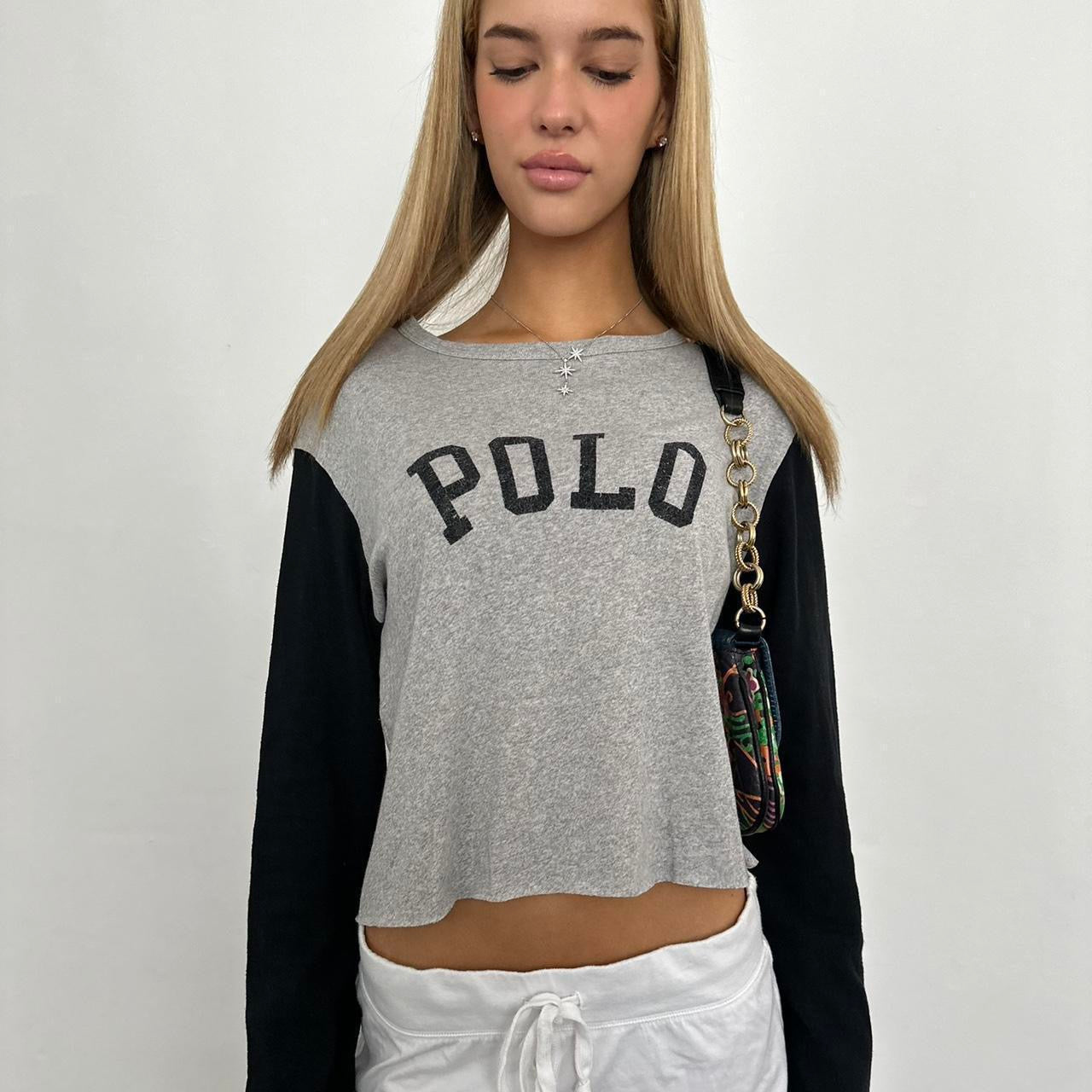 Vintage Ralph Lauren preppy grey cropped off shoulder top