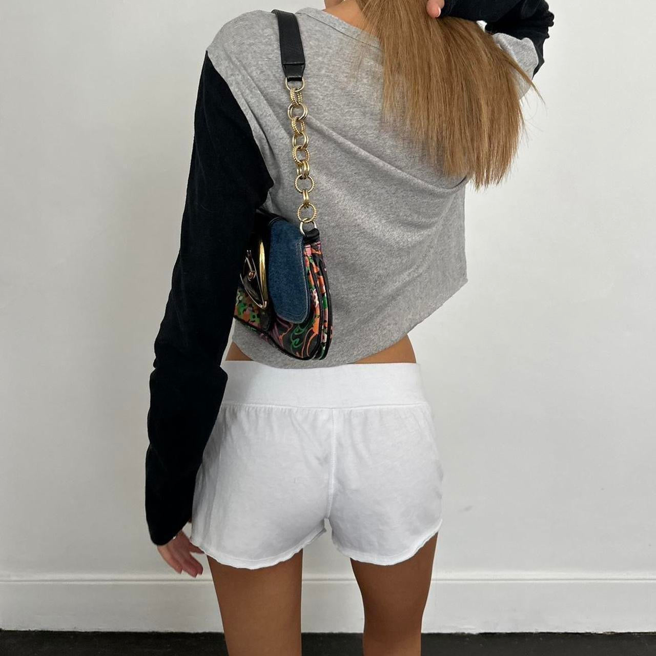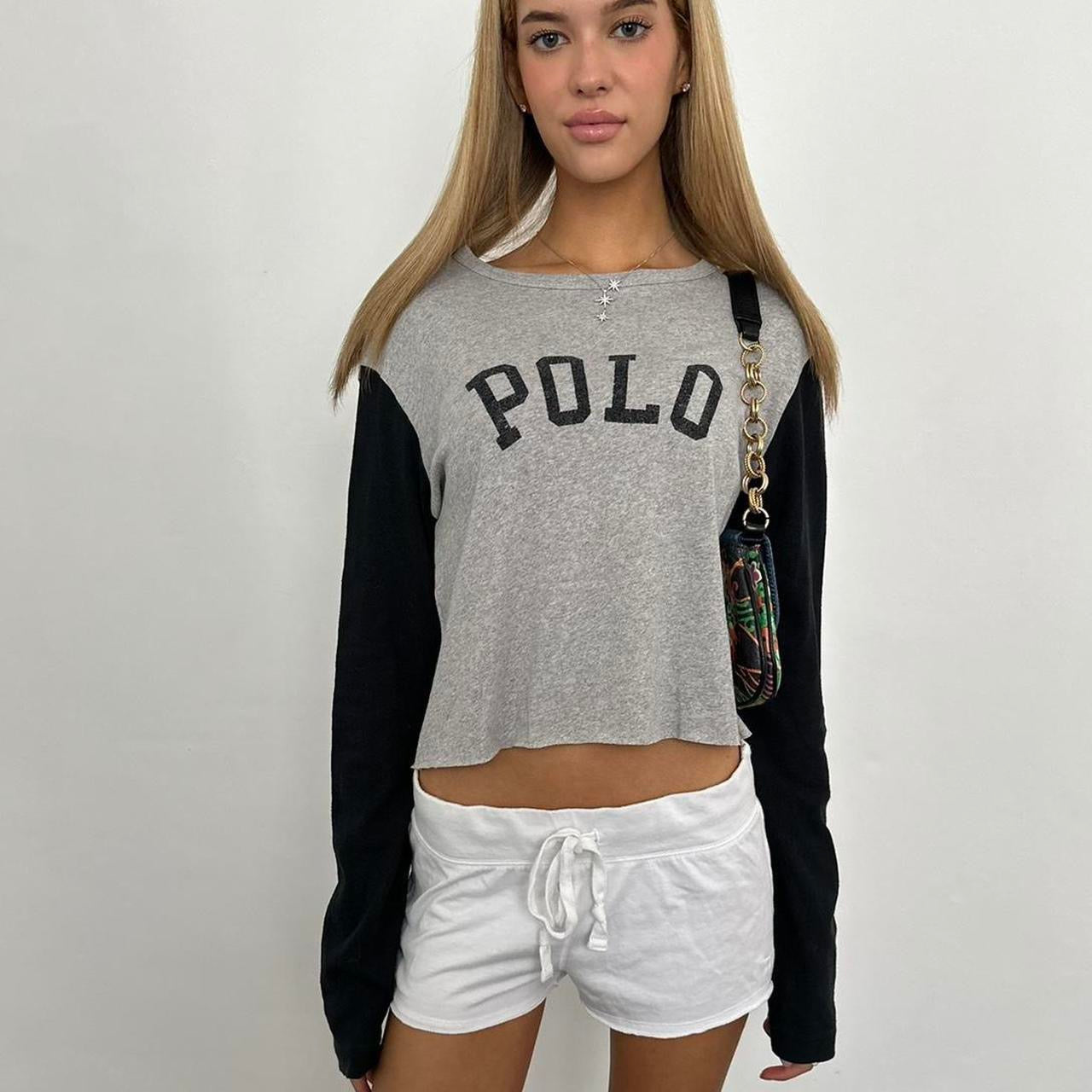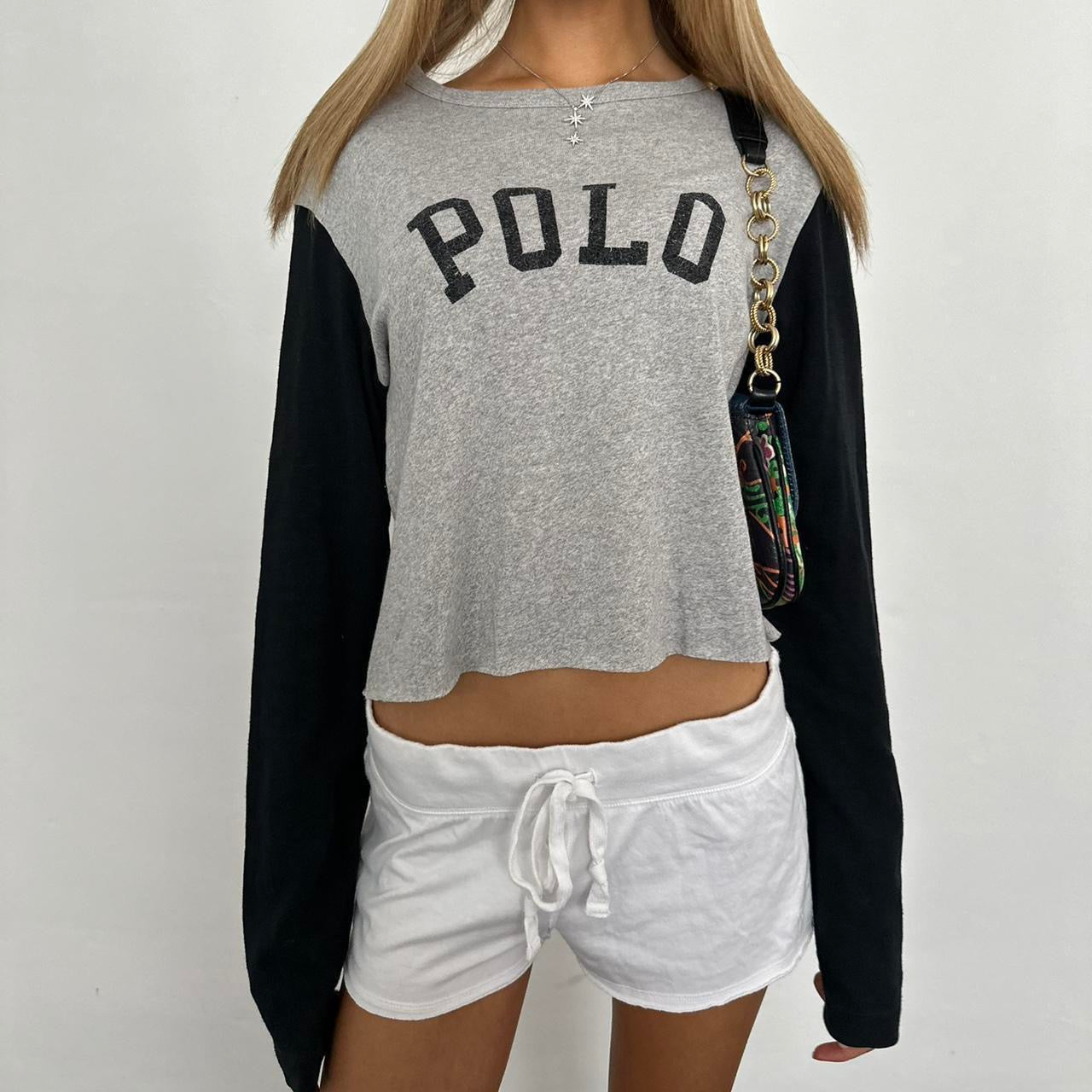 Vintage Ralph Lauren preppy grey cropped off shoulder top