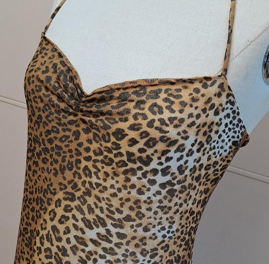 Vintage Antibes French 90’s Leopard print halter neck dress
